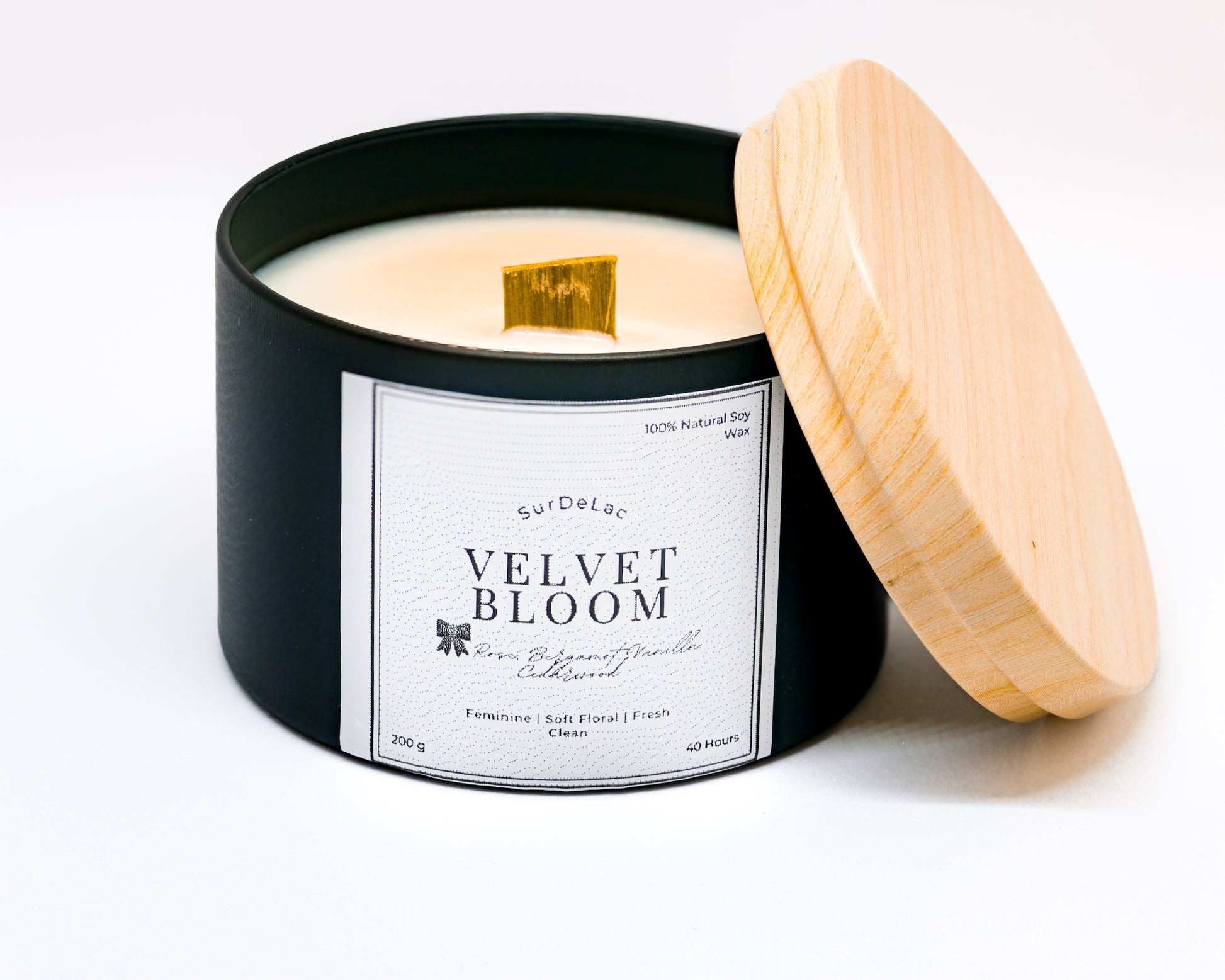 Velvet Bloom – Lumânare Artizanală Turnată Manual din Ceară de Soia